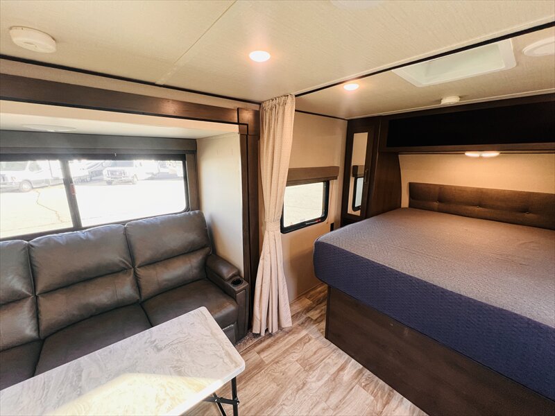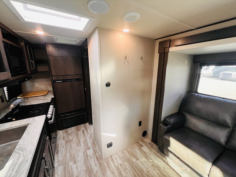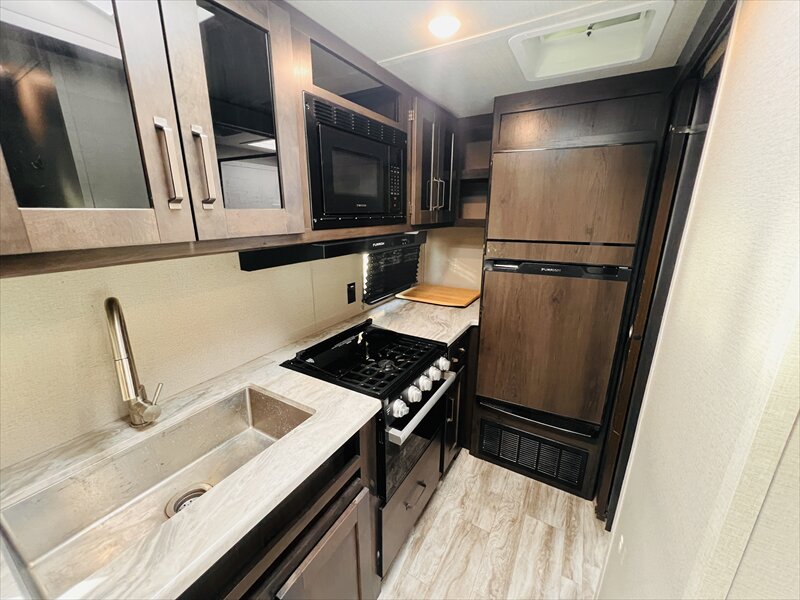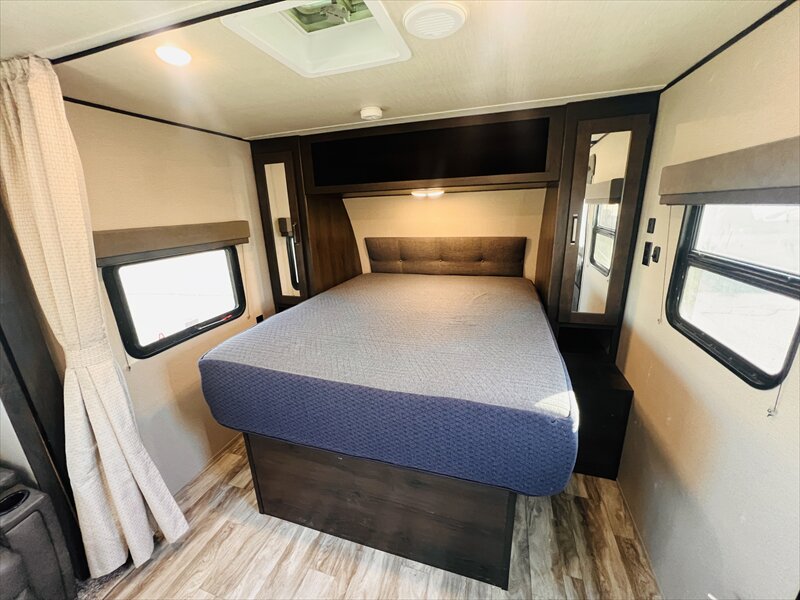 The Transcend Xplor travel trailers by Grand Design is your ticket to fun and adventure. Each model has been built to last through the seasons thanks to the Quadseal insulation, the double-insulated roof, and the heated and enclosed underbelly with suspended tanks. You will appreciate the power tongue jack when it comes time to set up, as well as the all-in-one utility center and the detachable power cord with an LED light. These models include many outlets throughout, USB ports to charge your gadgets, and an AM/FM/Bluetooth stereo with exterior speakers to keep you entertained. The interior of the Transcend Xplor will have you feeling right at home with upgraded residential furniture, a large, solid bedroom door, and residential countertops, and the list goes on!