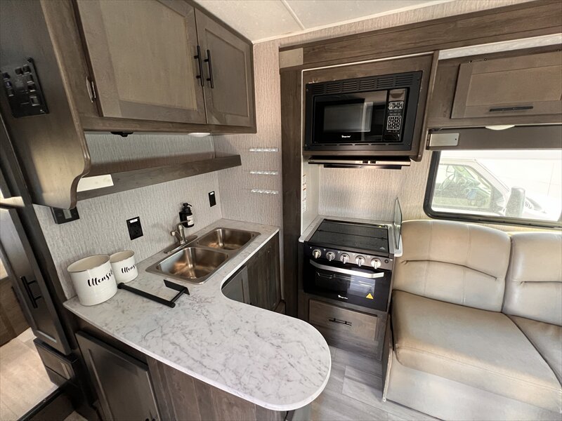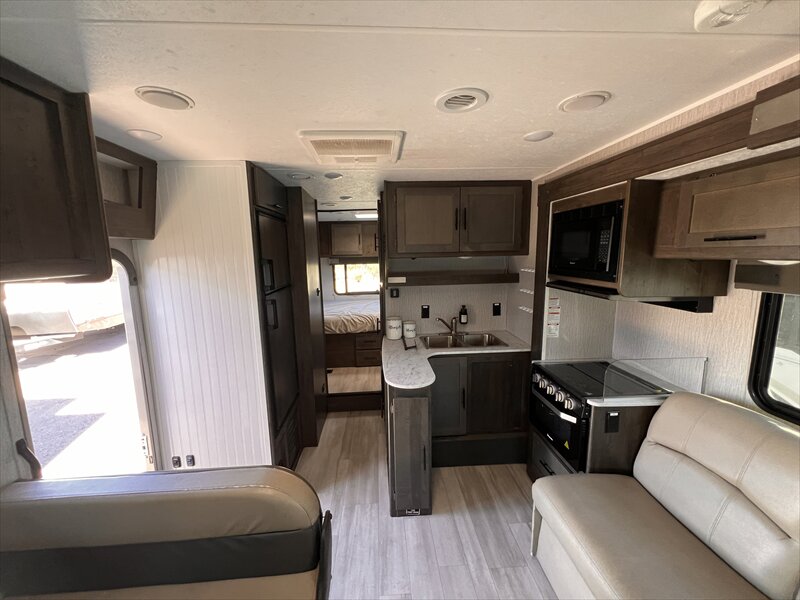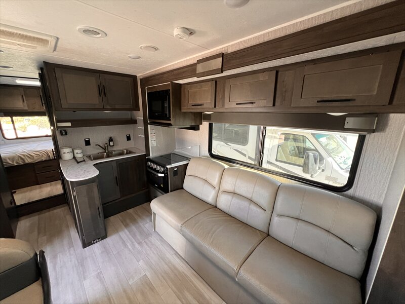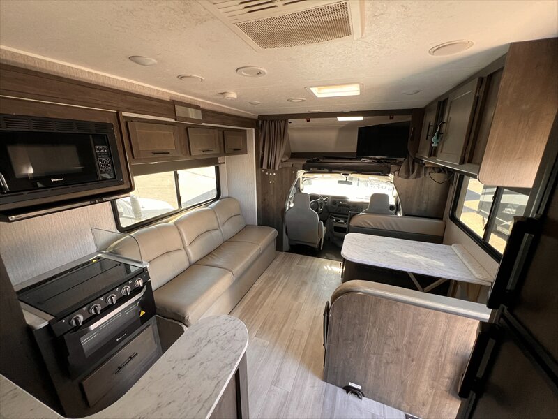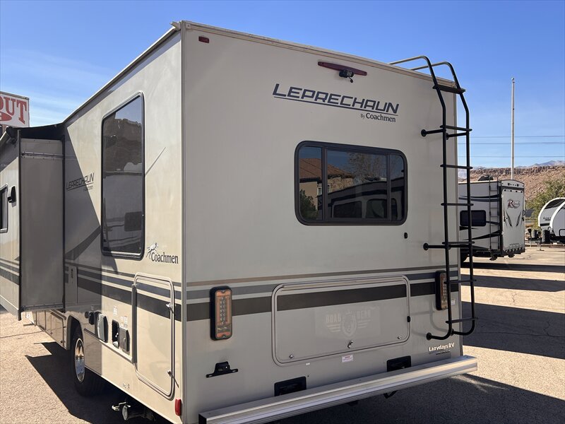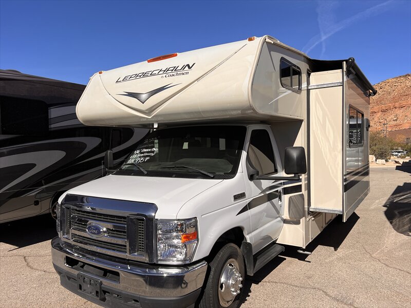 2023 Coachmen Leprechaun 260QB, Well-designed and dependable Class C motorhome that offers comfort, functionality, and value in one easy-to-drive package. Built on the Ford E-450 chassis and powered by a robust V8 engine, this coach features a spacious interior with a rear queen bedroom, large U-shaped dinette, and a cab-over bunk for extra sleeping space.